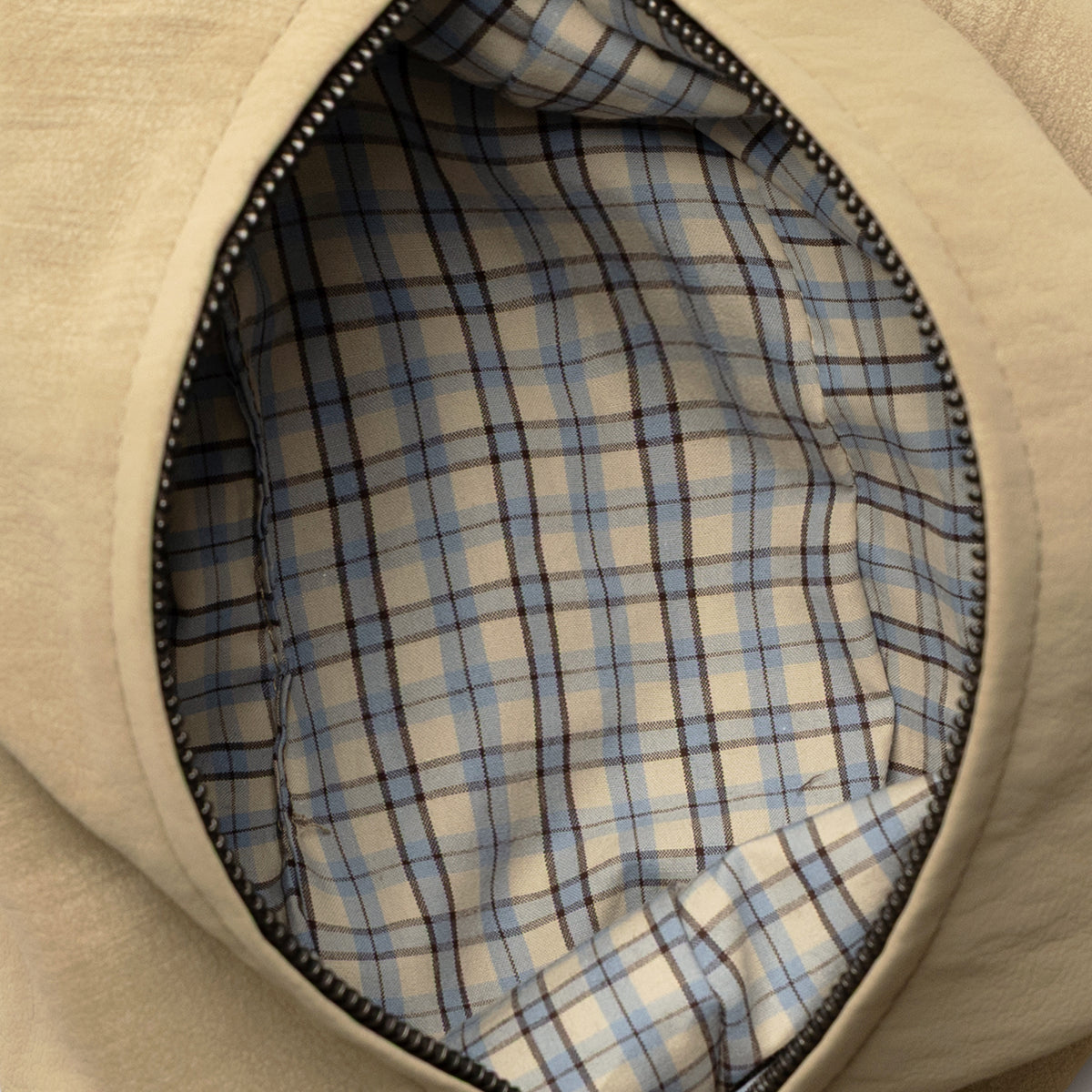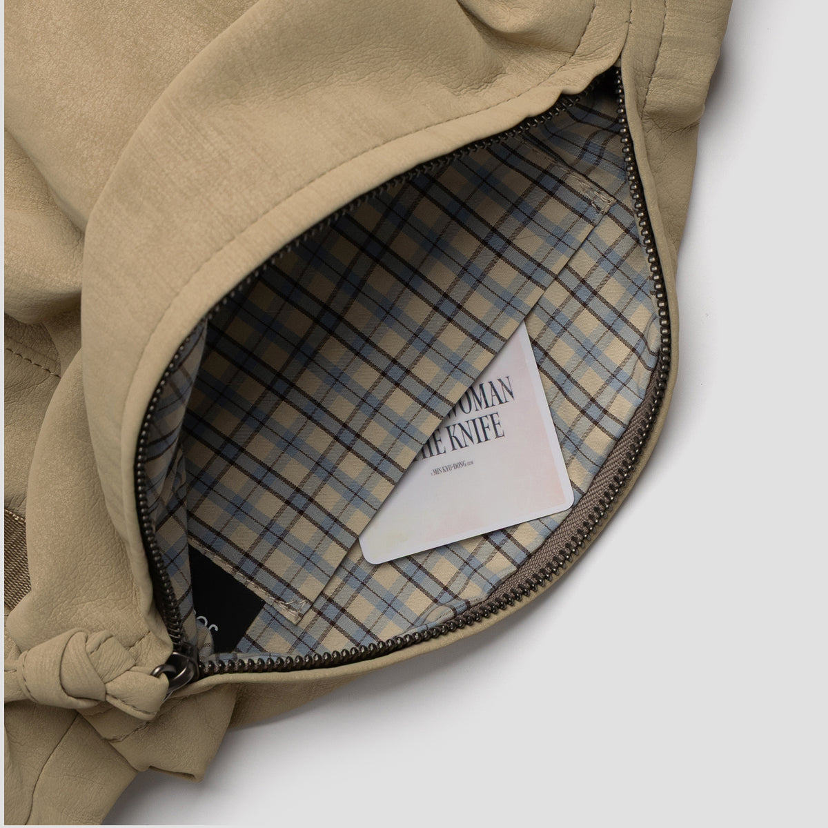 The interior is finished with a check-pattern lining for a stylish accent, along with an inner pocket that helps organize small essentials.