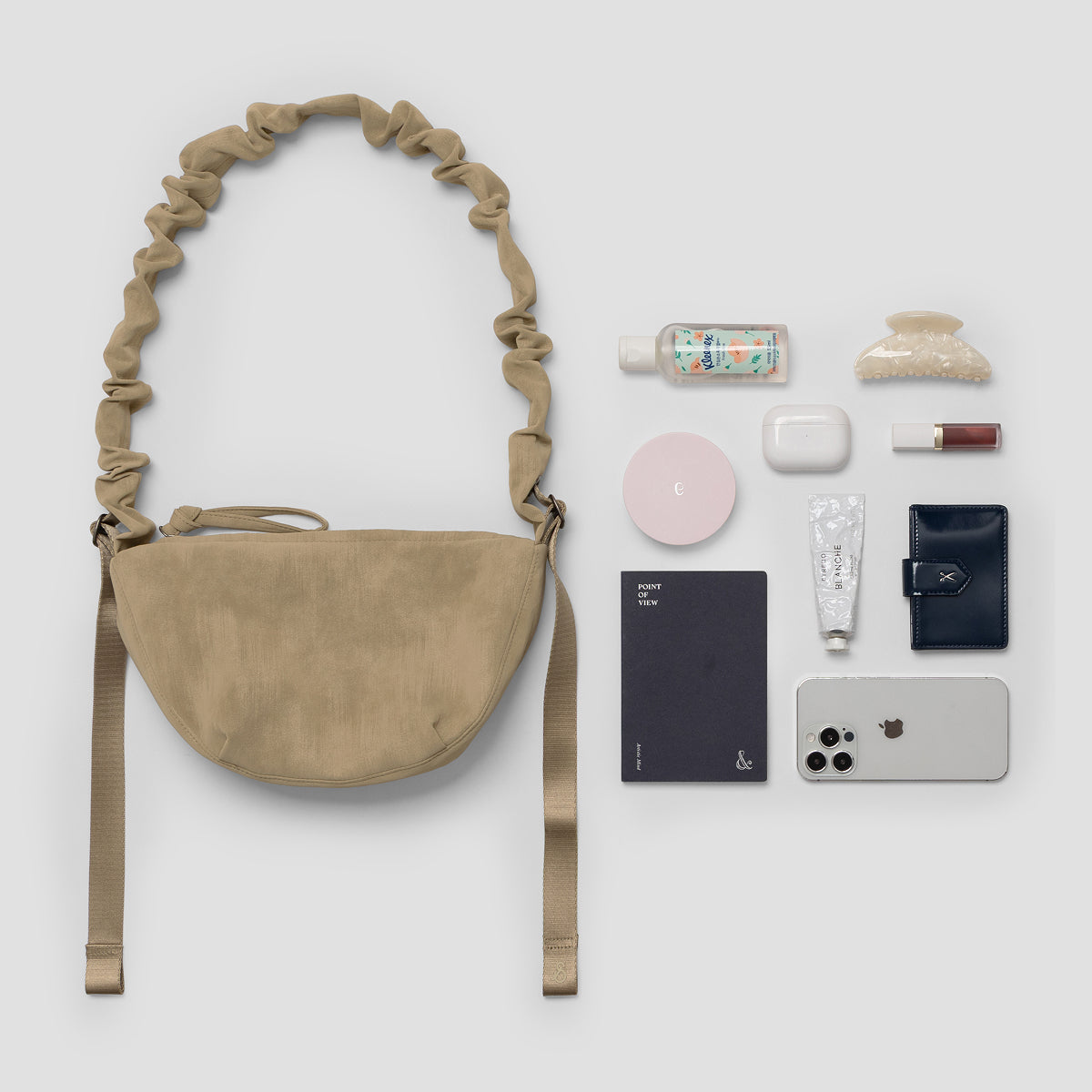 Daily Shirring Bag_Faux Suede Smoky Beige