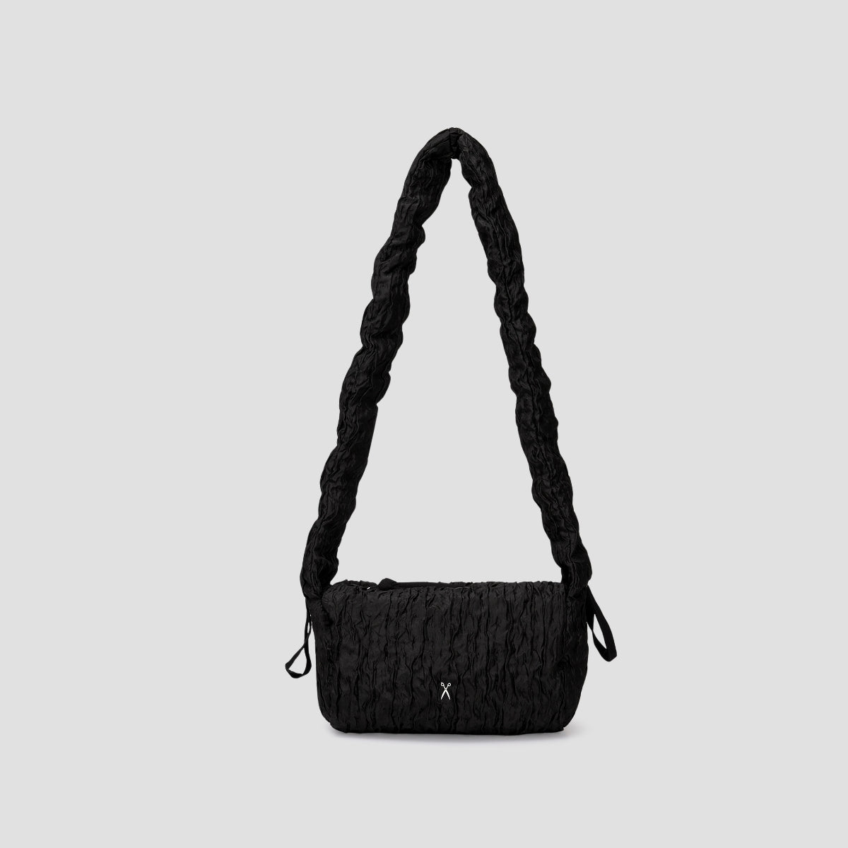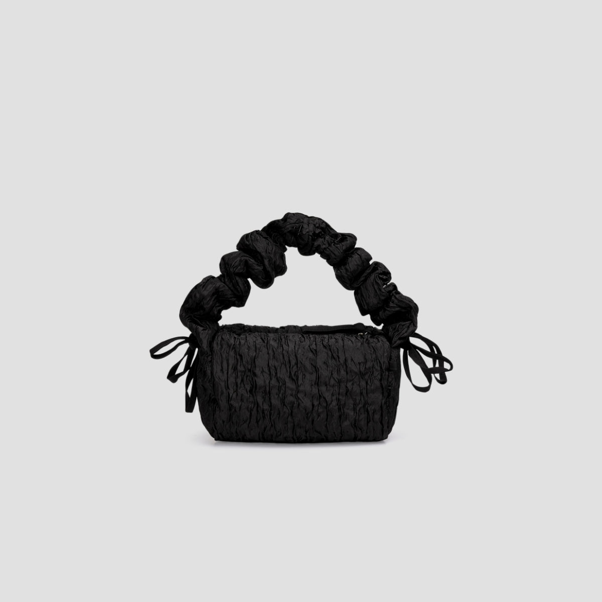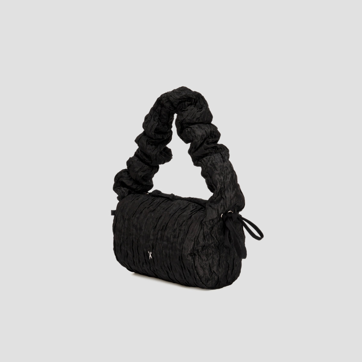 A new style of daily shirring bag, using crinkle material to create a natural and unique wrinkle detail from the strap to the body.