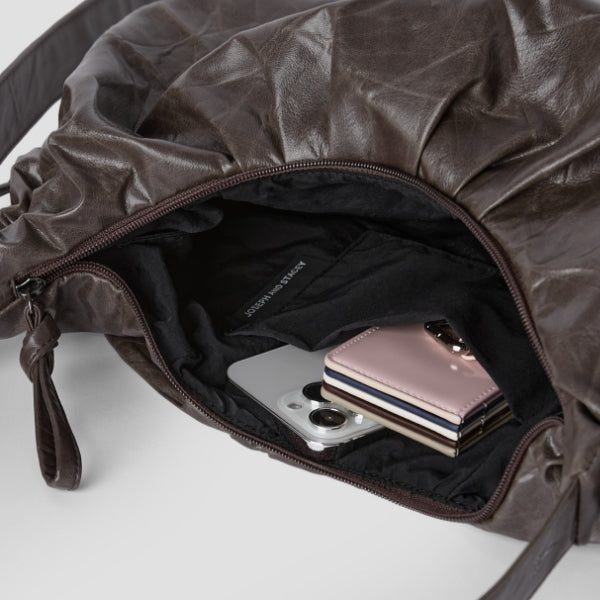 Daily Wrinkle Bag S_Faux Leather Brown