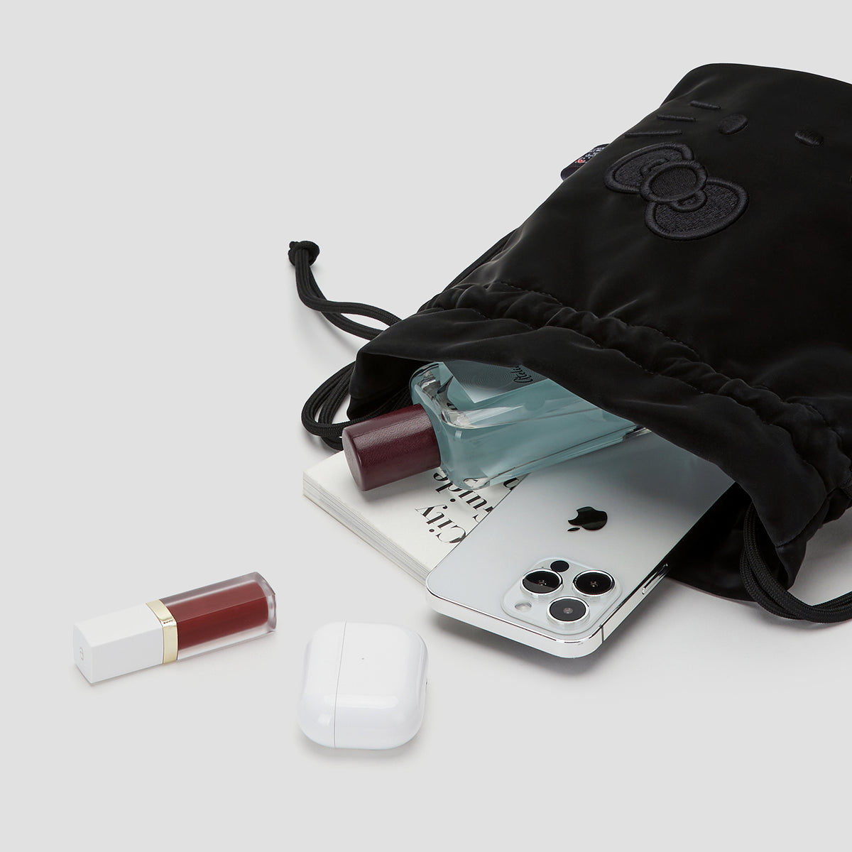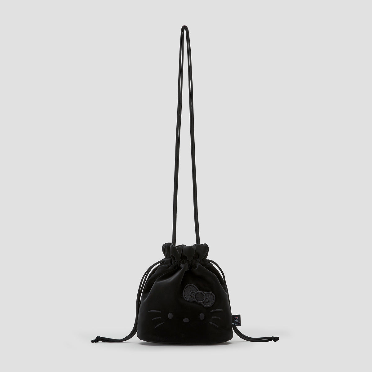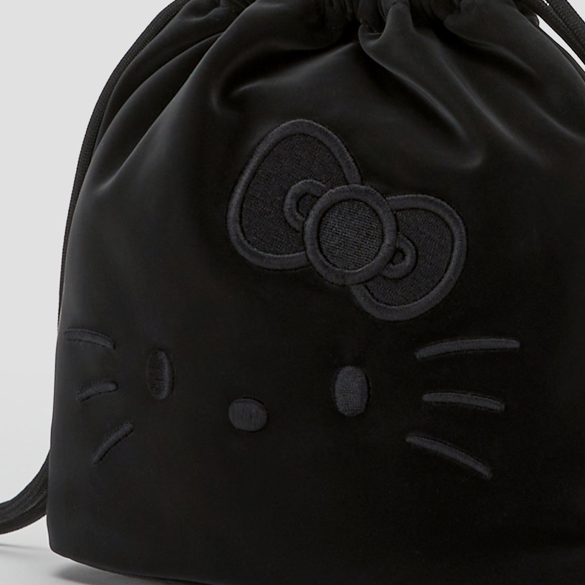 Featuring a matte black fabric with enhanced volume and texture, the embroidery and ribbon details bring Hello Kitty to life with added dimension, offering a charmingly unique take on the beloved character.