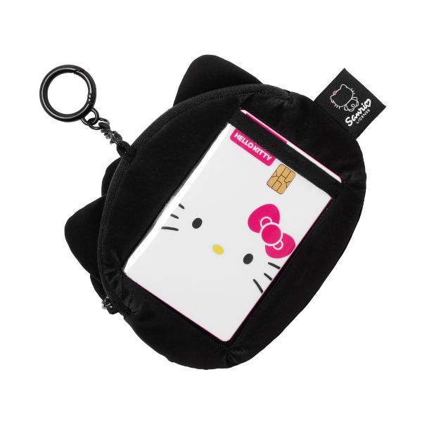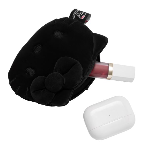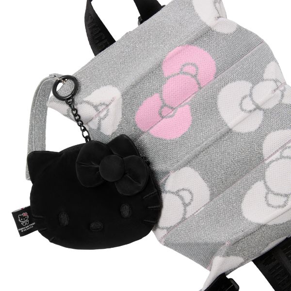 Featuring a matte black fabric with enhanced volume and texture, the embroidery and ribbon details bring Hello Kitty to life with added dimension, offering a charmingly unique take on the beloved character.