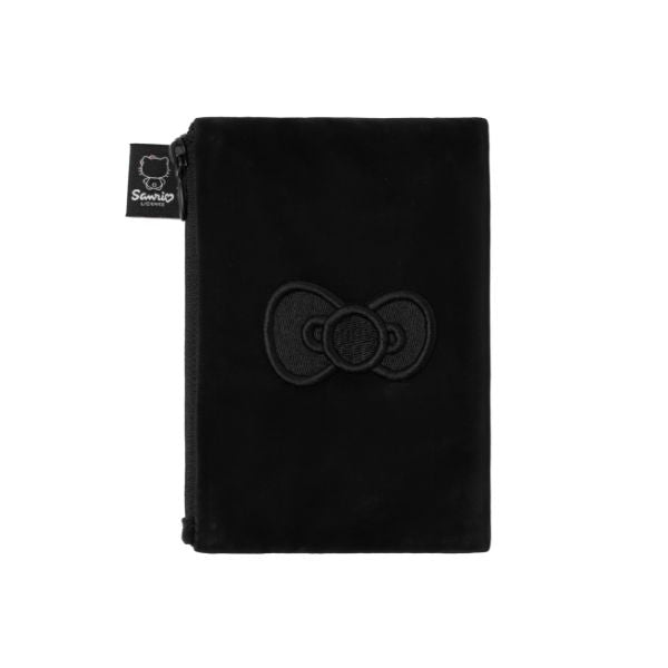 Featuring a matte black fabric with enhanced volume and texture, the embroidery and ribbon details bring Hello Kitty to life with added dimension, offering a charmingly unique take on the beloved character.