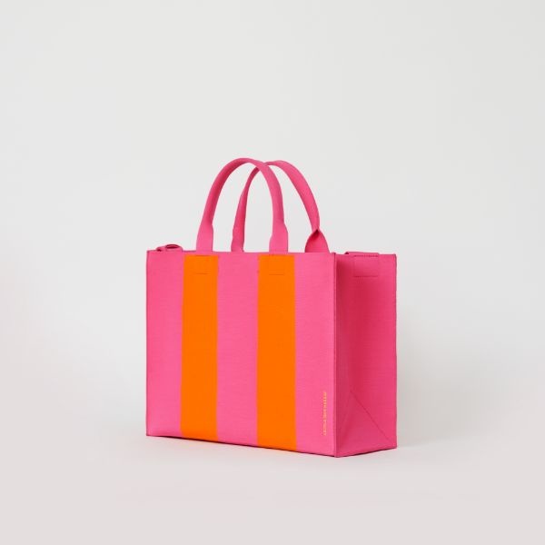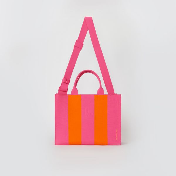 LPK Lattice Knit Tote Bag L Stripe Orange on Pink