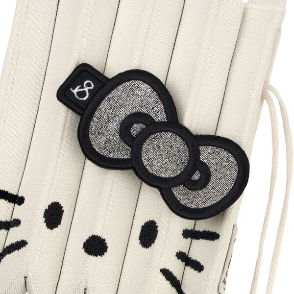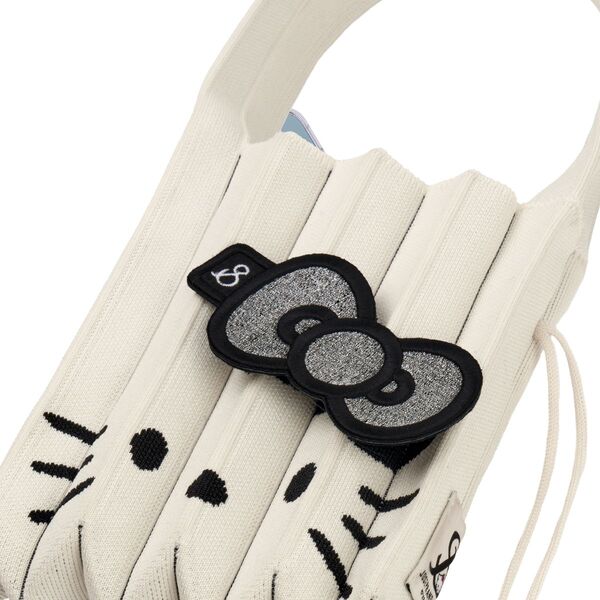 Featuring a matte black fabric with enhanced volume and texture, the embroidery and ribbon details bring Hello Kitty to life with added dimension, offering a charmingly unique take on the beloved character.