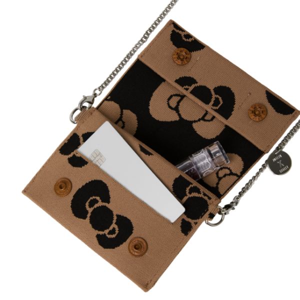 Lucky Knit Card Wallet With Chain Leopard Hello Kitty Tan Brown