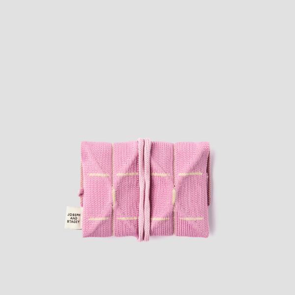 Lucky Pleats Knit Card Wallet Grid Cotton Pink