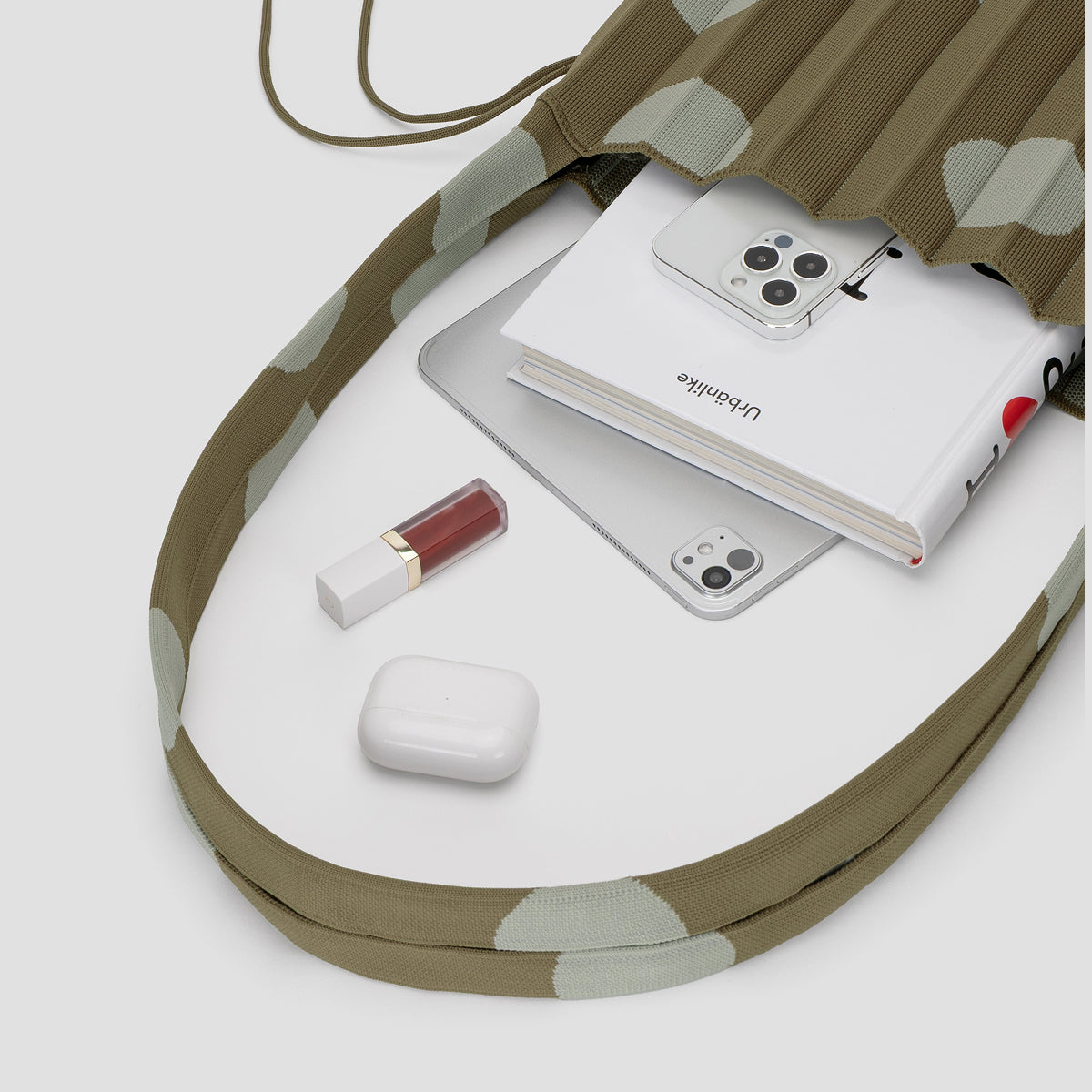 Lucky Pleats Knit Cross Dot Khaki Olive