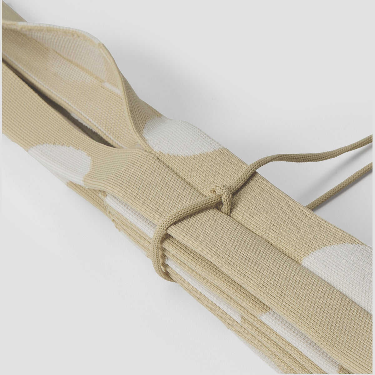 The rhythmic yet free repetition of lively dot motifs conveys a sense of happiness, while the warm texture of knit brings small moments of delight into everyday life."