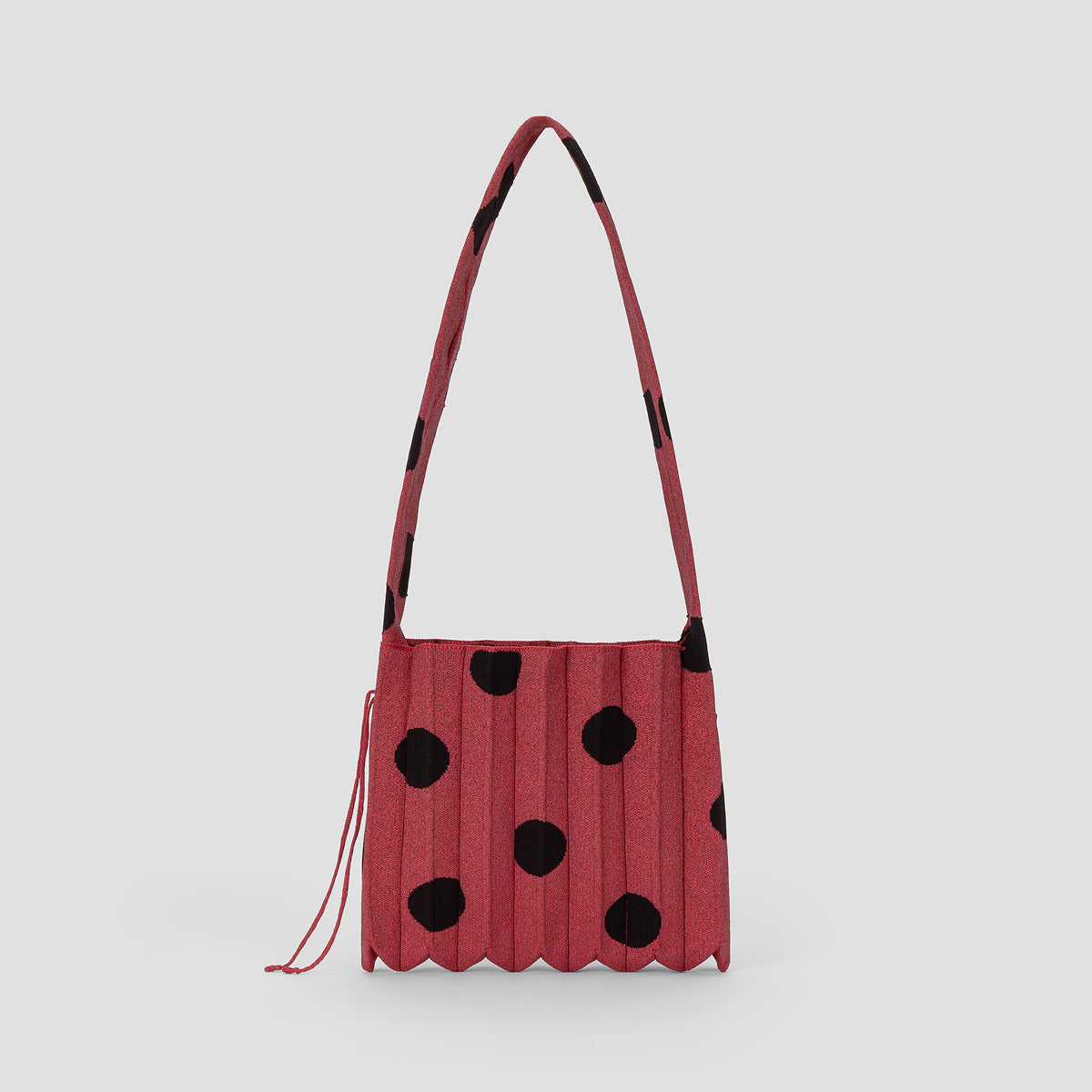 Lucky Pleats Knit Crossbody M Dot Hello Kitty Coral Red