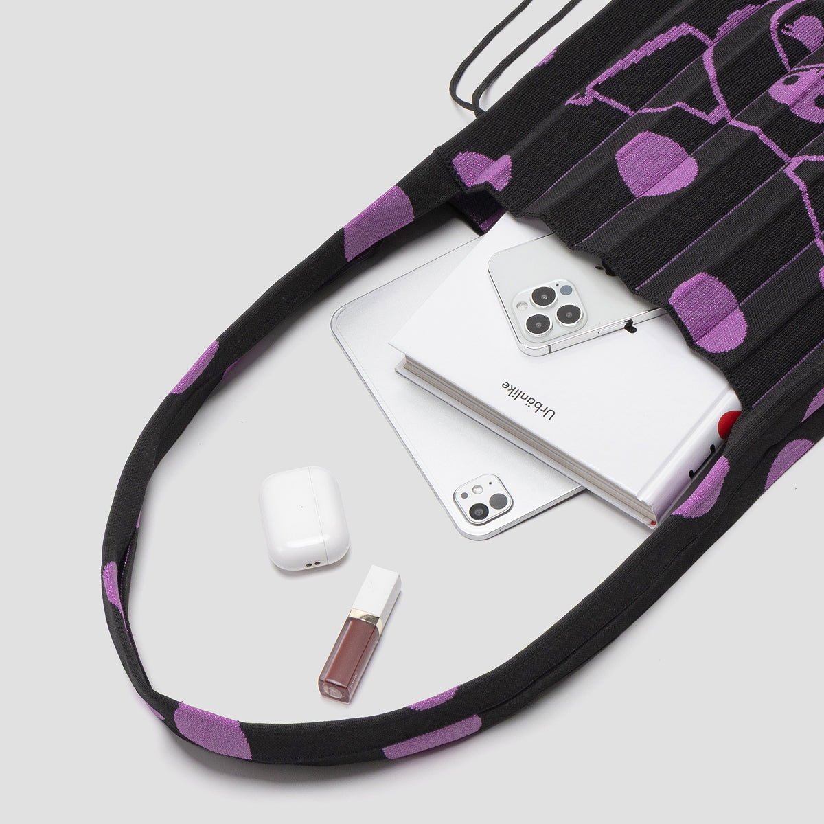 Lucky Pleats Knit Crossbody M Dot Kuromi Rich Black