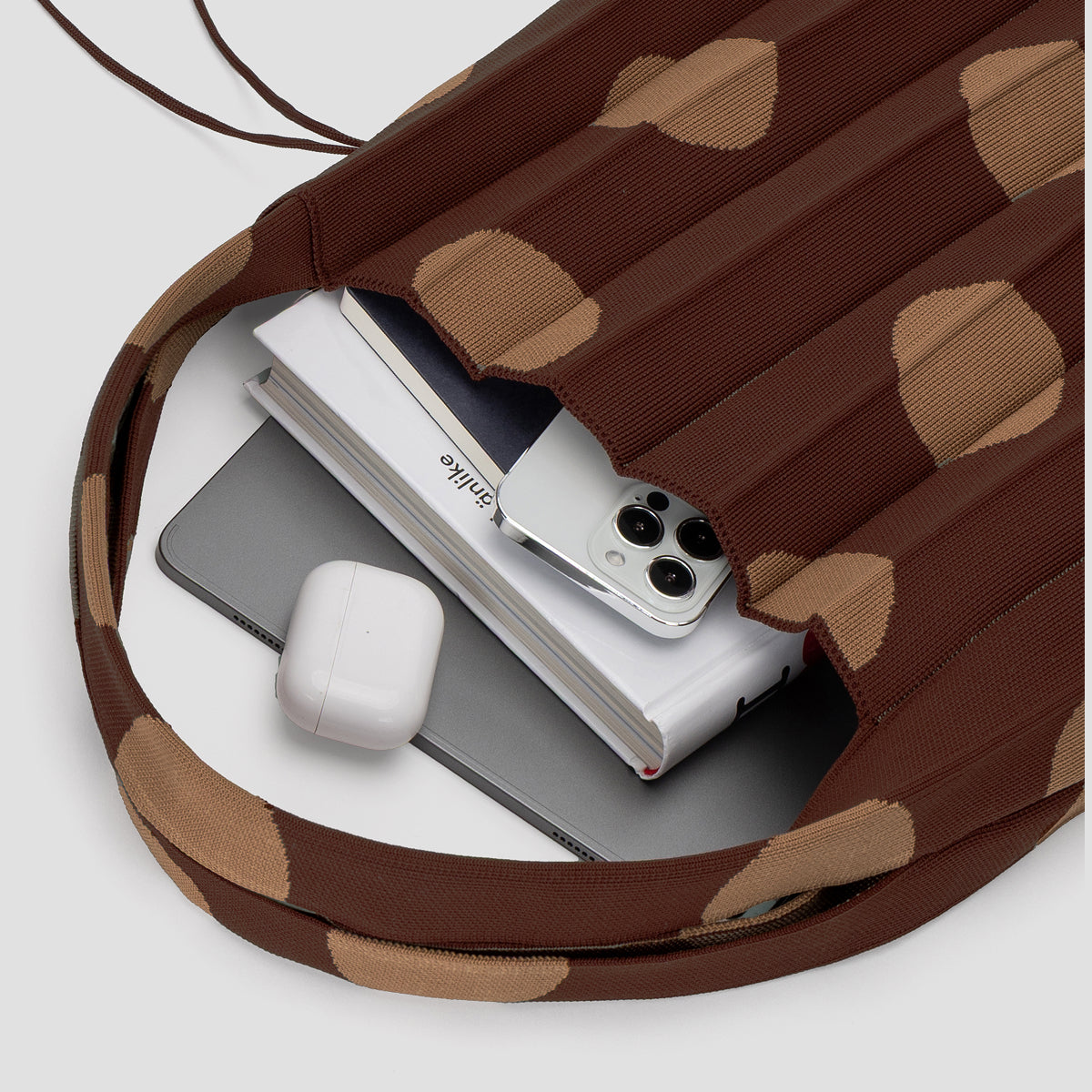 The rhythmic yet free repetition of lively dot motifs conveys a sense of happiness, while the warm texture of knit brings small moments of delight into everyday life."