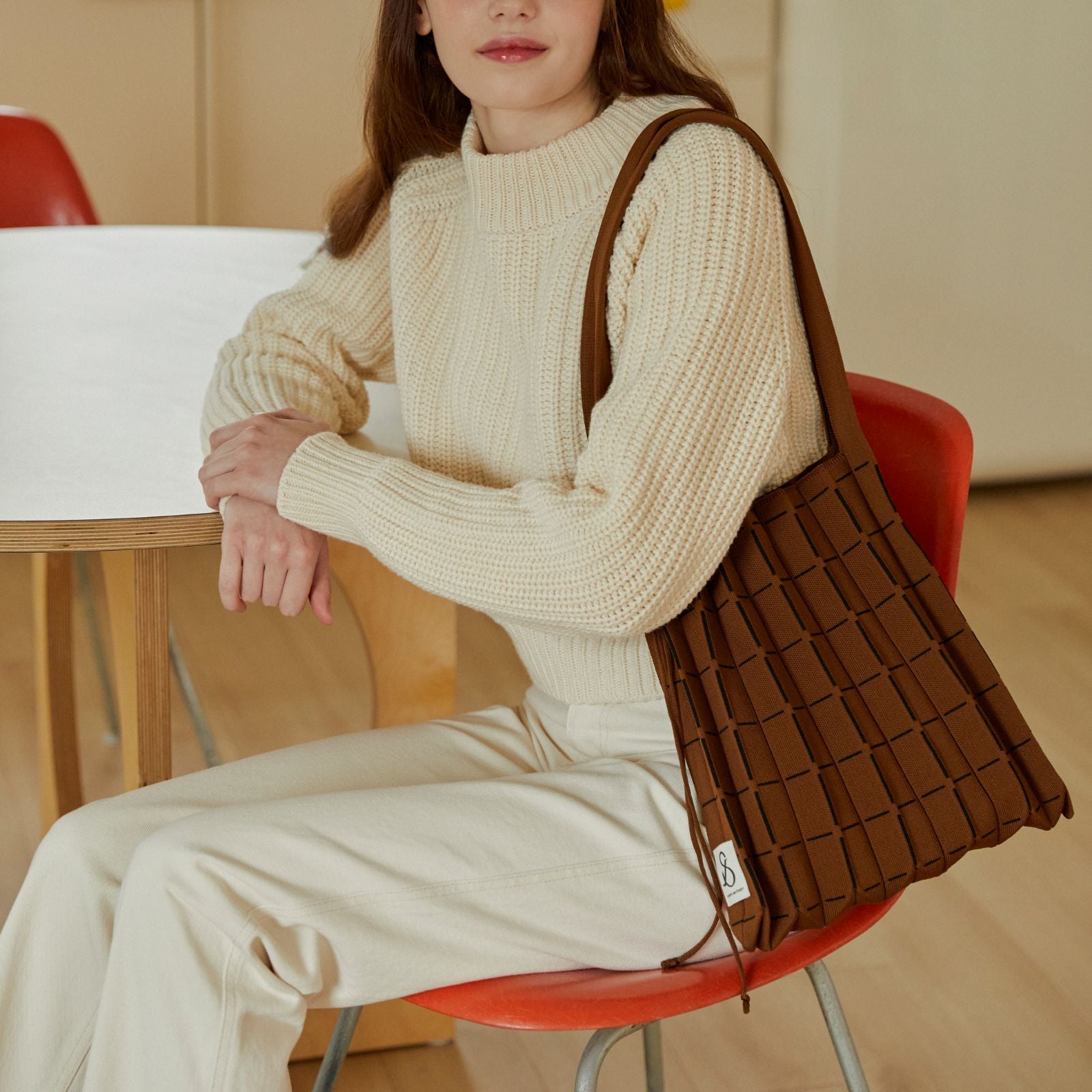 Crafted with flexible yet durable knitting, it folds flat for easy storage and offers excellent elasticity. Made from recycled PET bottles using zero-waste production methods, it’s a stylish and eco-conscious choice.