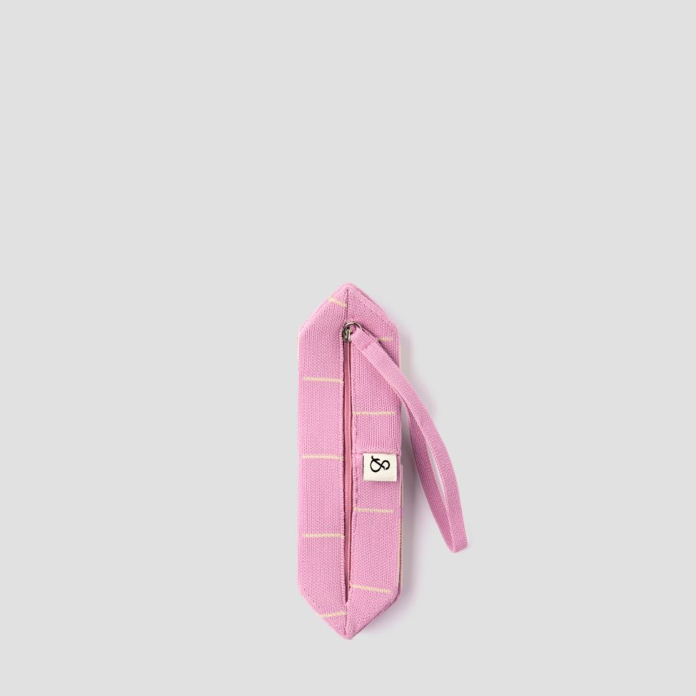 Lucky Pleats Knit Pouch S Grid Cotton Pink