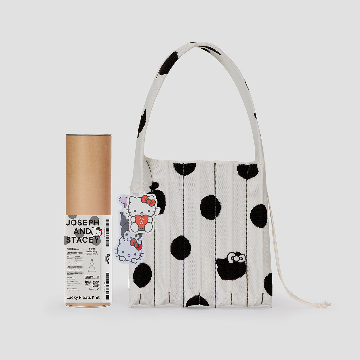 Introducing the Sanrio Characters hidden within JOSEPH AND STACEY’s signature design, the Lucky Pleats Knit. Playfully tucked between the lively polka-dot patterns, the Sanrio Characters add a cheerful and charming touch, completing a design full of visual delight. With its lightweight structure, every outing feels like a joyful journey, and its versatile layered styling makes it even more practical for daily use.