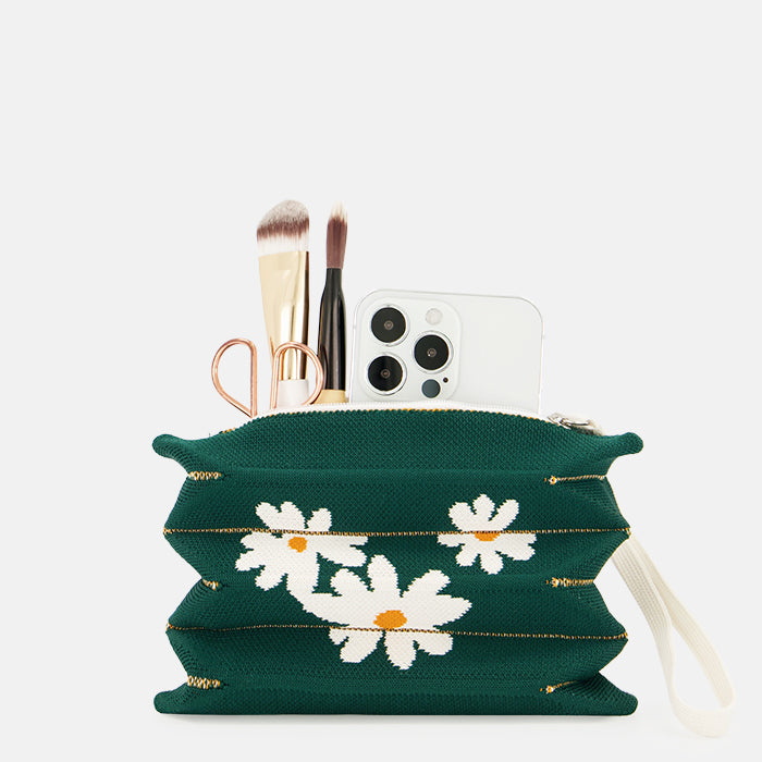 Lucky Pleats Pouch S Daisy Deep Forest