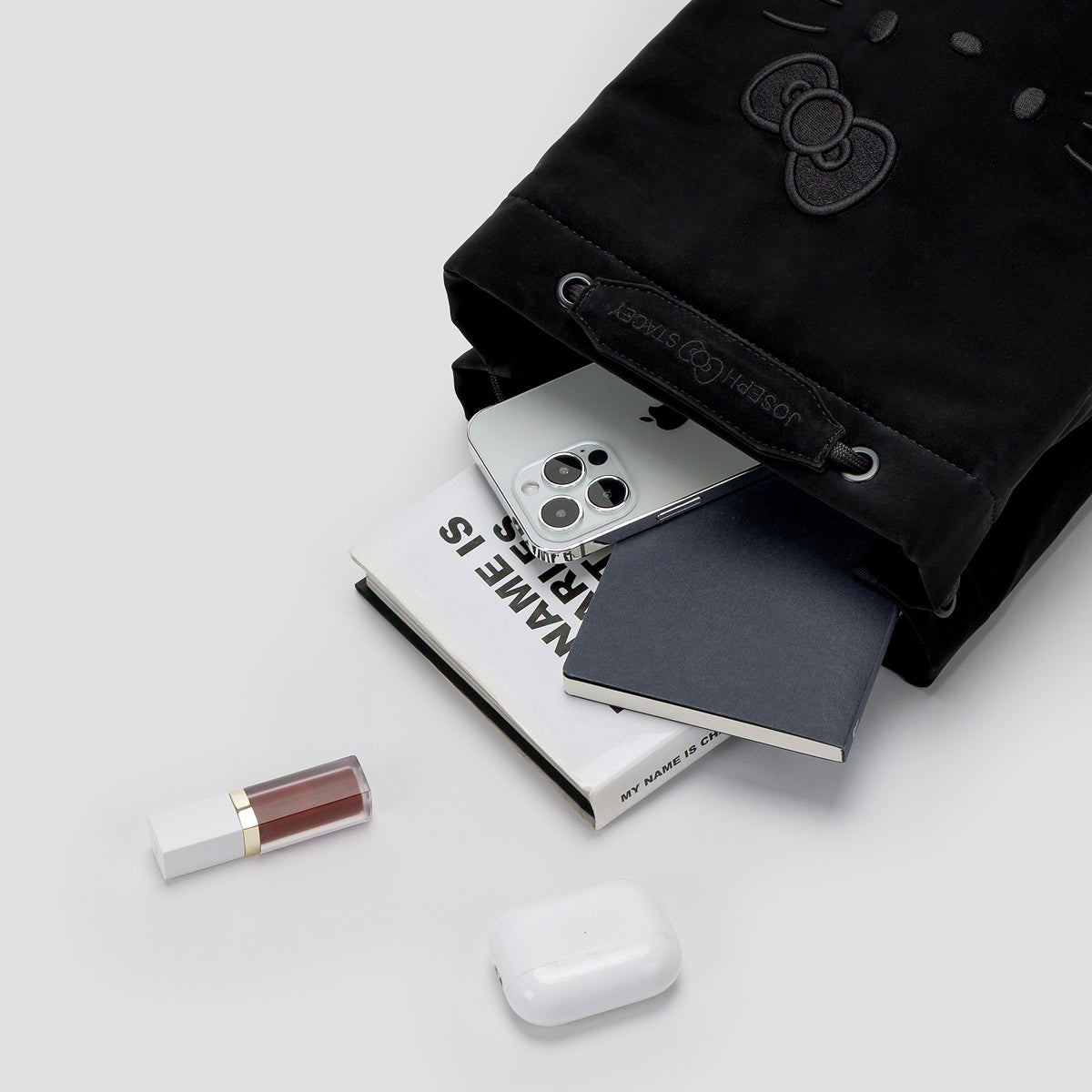 JOSEPH AND STACEY's signature design meets Hello Kitty to introduce the chic and playful Hello Kitty Black Edition. Featuring a matte black fabric with enhanced volume and texture, the embroidery and ribbon details bring Hello Kitty to life with added dimension, offering a charmingly unique take on the beloved character.