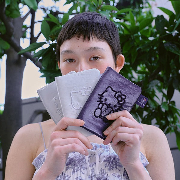 Featuring a matte black fabric with enhanced volume and texture, the embroidery and ribbon details bring Hello Kitty to life with added dimension, offering a charmingly unique take on the beloved character.